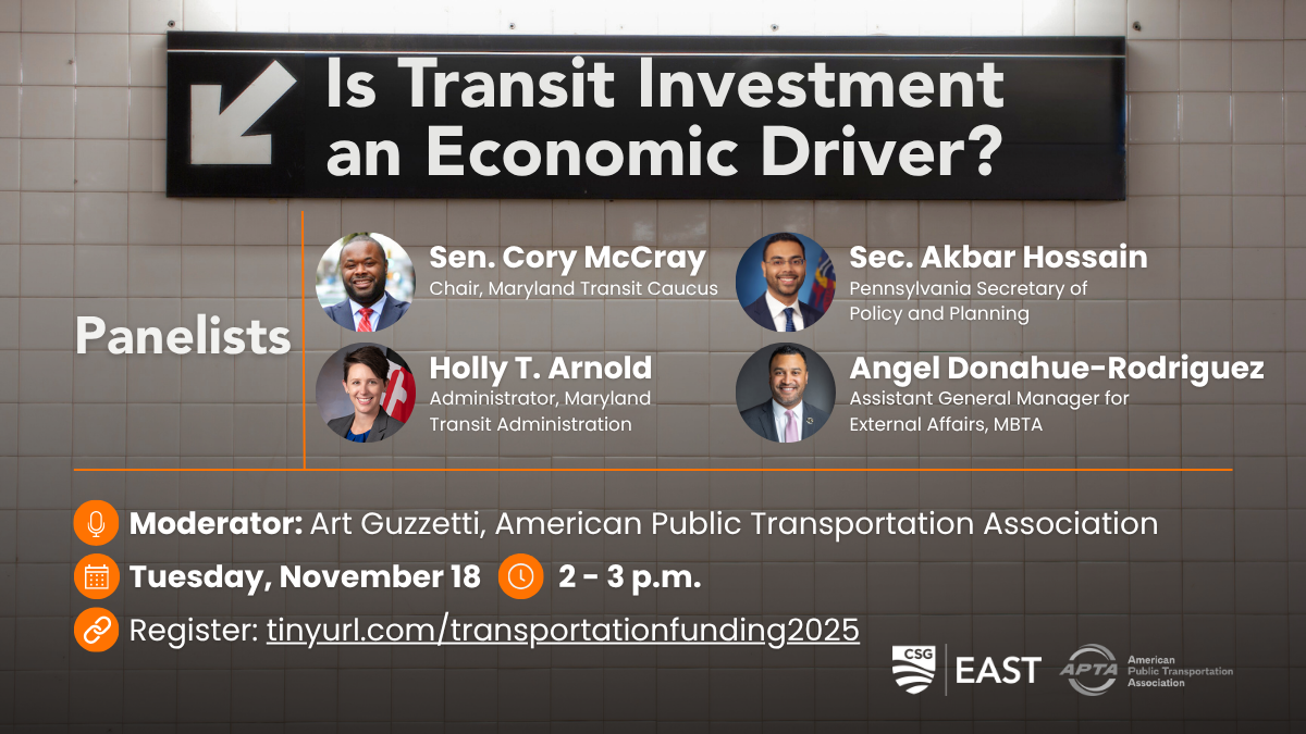 Please join CSG East and APTA for a special virtual discussion on transit’s fiscal sustainability and economic impact.